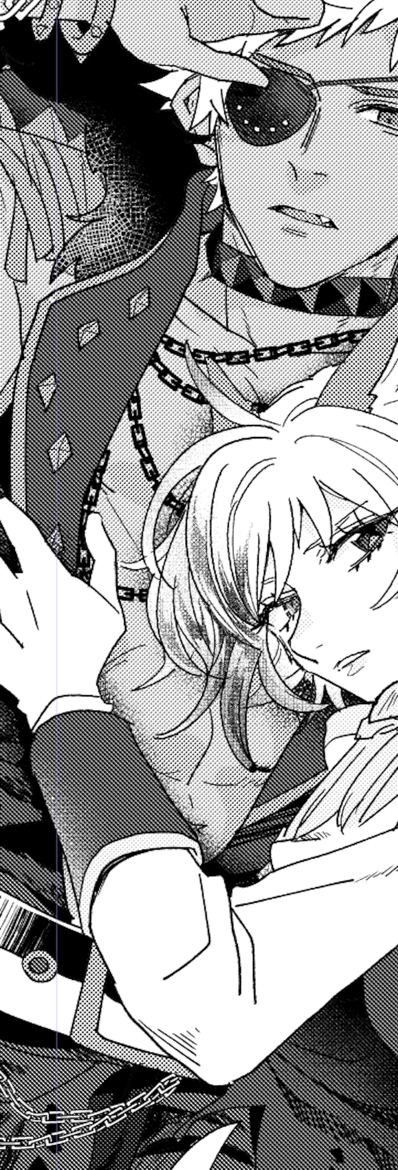 カラーイラストでもそうだけど私は物の質感がうまく表現できないのでモノクロだと余計に目立つな……もっとトーンの使い方とかモノクロ原稿ならではの処理に挑戦したいですね次があったら…